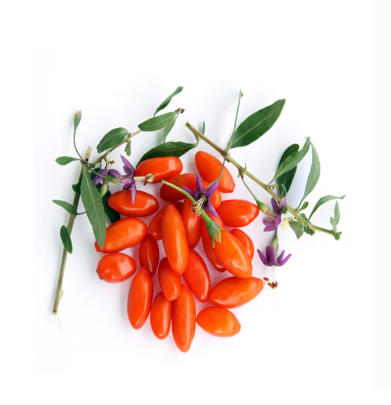 Goji berries have been used in Chinese medicine for more than 6,000 years. They are also known as wolfberries and are a fruit of the Lycium barbarum and Lycium chinense. Both species are native to Asia and produce a bright orange-red berry of 1-2cm diameter.